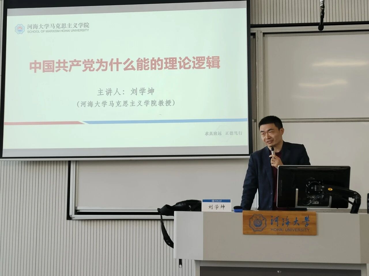 3月24日下午两点半,河海大学马克思主义学院刘学坤教授在我院作主题为“中国共产党为什么能的理论逻辑”的学术报告。本次讲座在河海大学常州校区2号楼B113举办,采取线上线下相结合的形式,河海大学马克思主义学院部分教师、研究生和本科生参加。