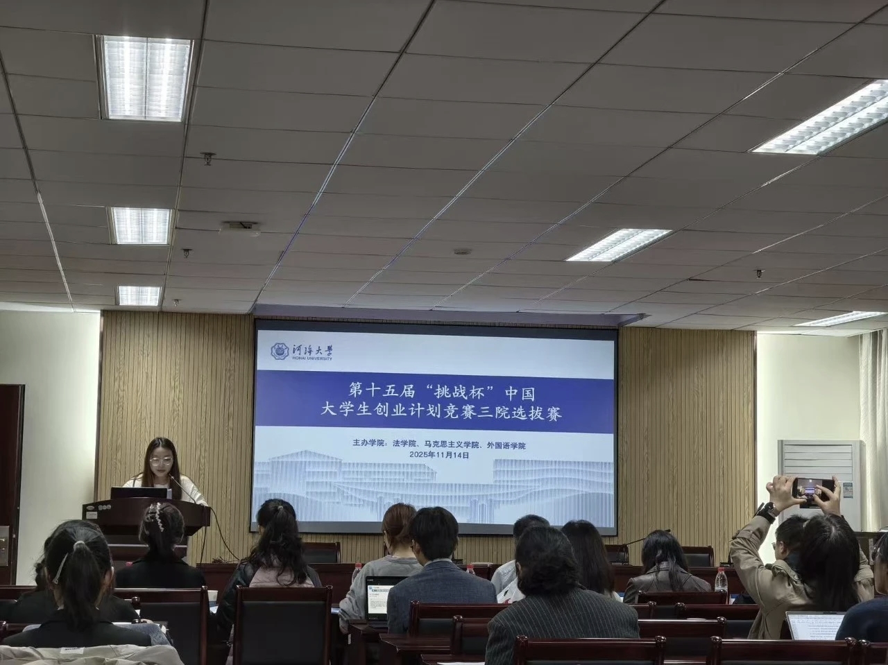 为深入贯彻《关于举办第十五届“挑战杯”中国大学生创业计划竞赛校内选拔赛的通知》文件精神,锚定“深化创新实践能力、促进跨学科成果落地”的核心目标。2025年11月14日晚,河海大学马克思主义学院、法学院与外国语学院于江宁校区厚学楼1208室成功举办了河海大学第十五届“挑战杯”中国大学生创业计划竞赛院内答辩活动。