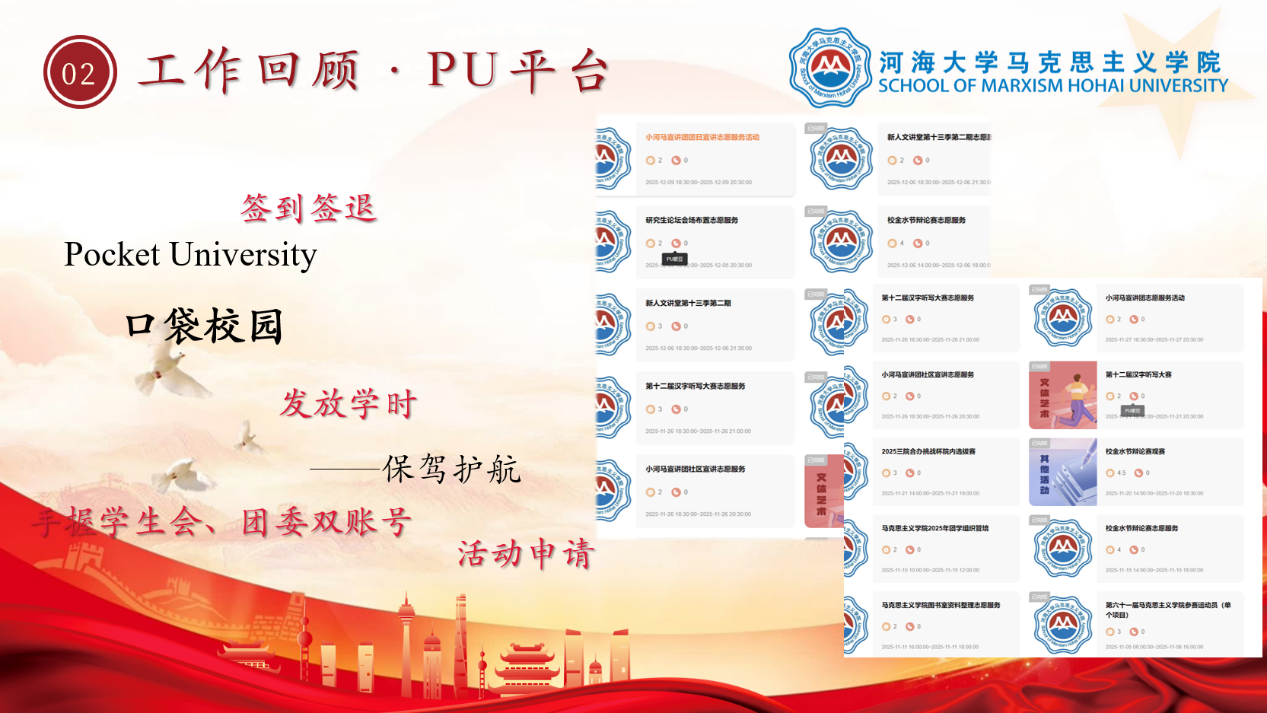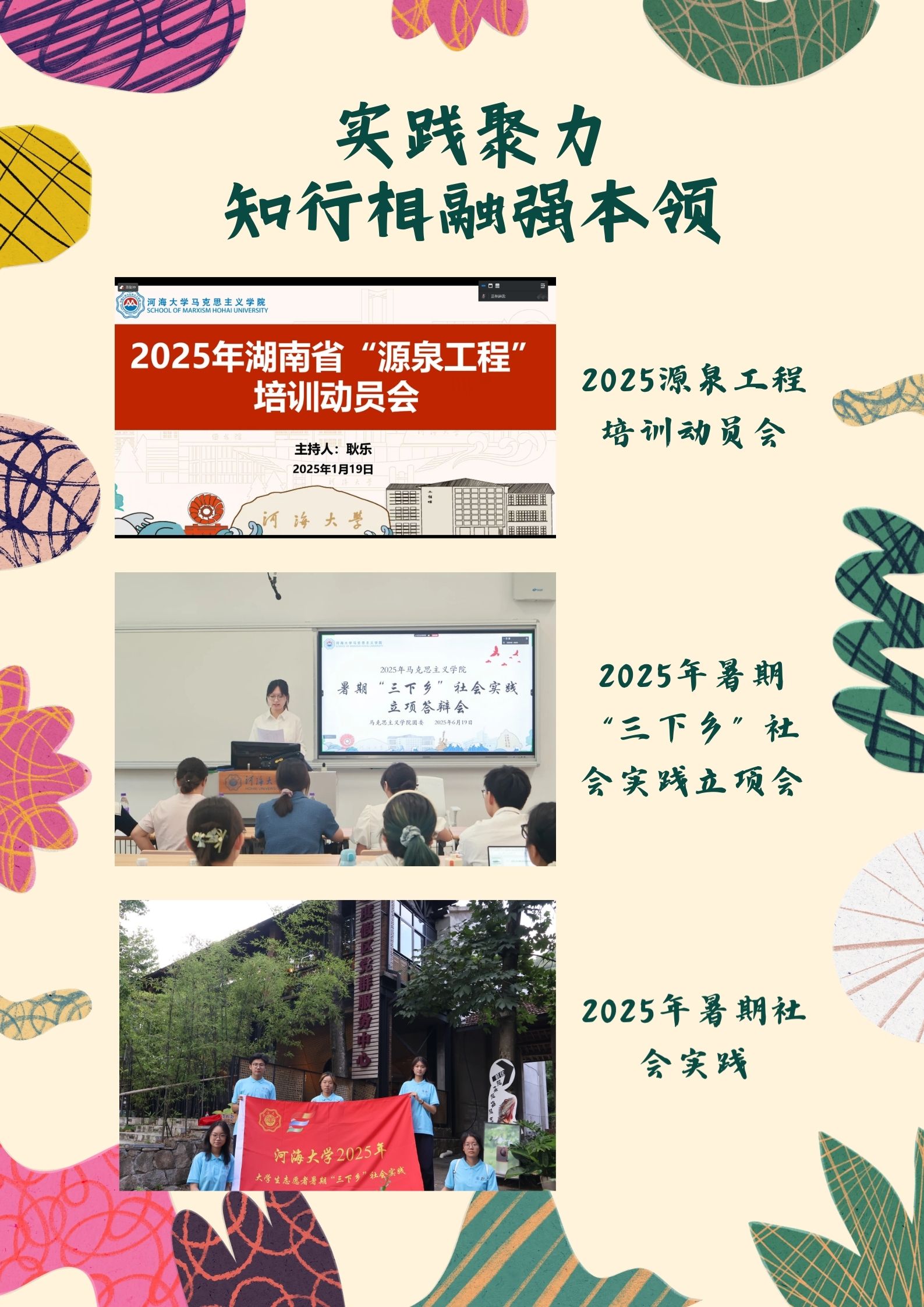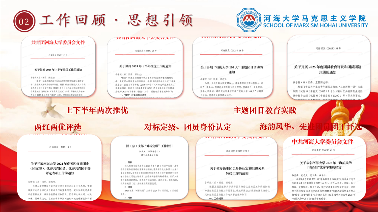 砥砺深耕,履践致远。2025年,河海大学马克思主义学院团学组织在学院党委、团委的坚强领导下,在全体成员的团结努力下,以笃行实干绘就了蓬勃向上的青春画卷。