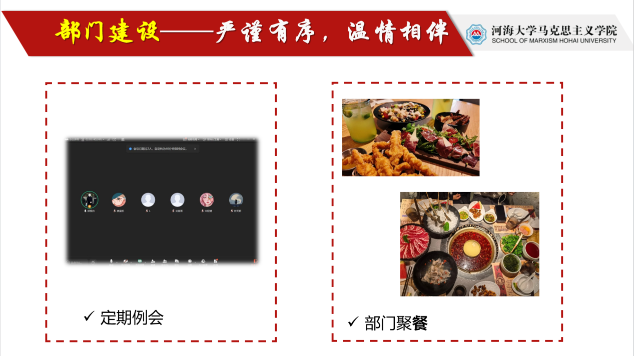齐心协力,加强部门建设。学习与生活服务部对内对外团结一致,以例会制度、反思制度、部门对接制度为着力点,加强部门文化建设。部门还会在空闲时间开展团建活动,营造独具特色的部门文化氛围。