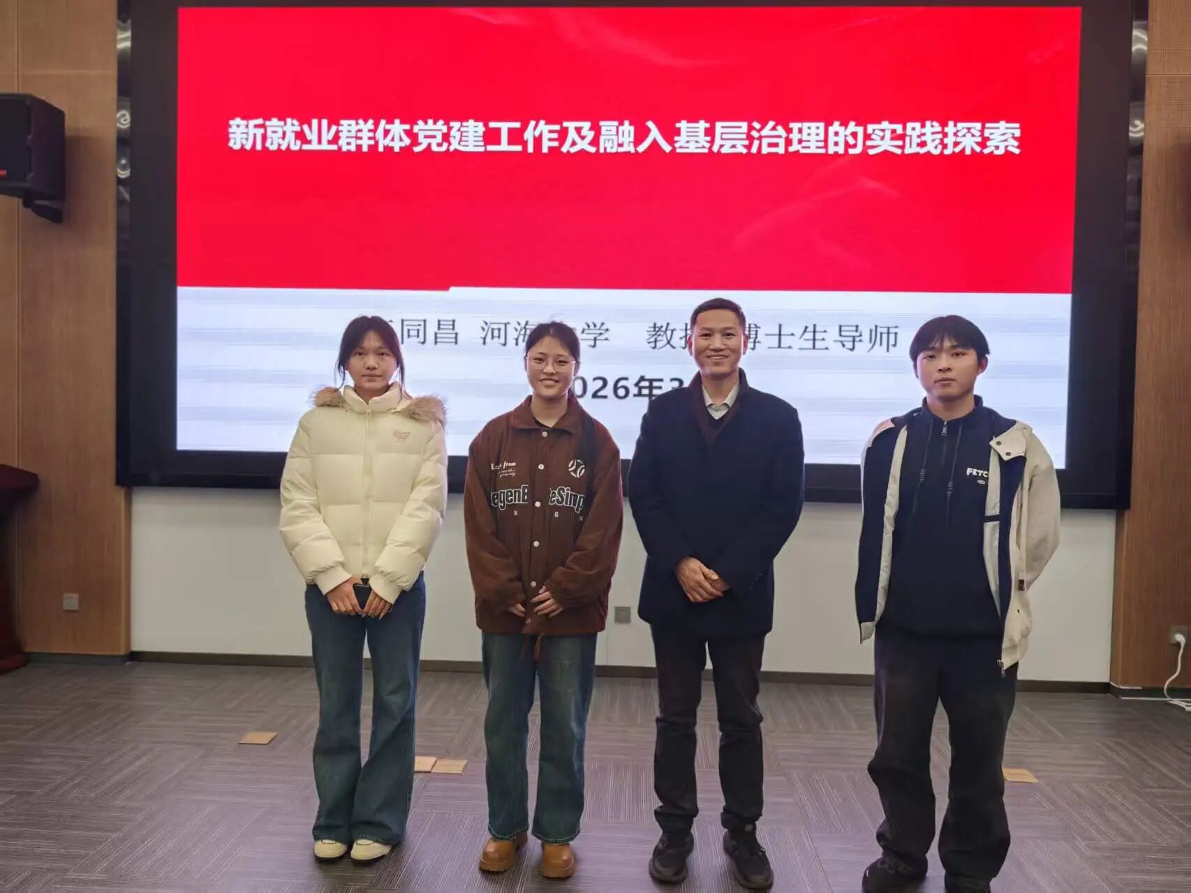2026年3月12日,河海大学马克思主义学院教授、博士生导师王同昌老师为同学们带来一场主题为《新就业群体党建工作及融入基层治理的实践探索》的学术讲座。本次讲座于河海大学常州校区6号楼W104会议室举行,面向常州校区全体学生。