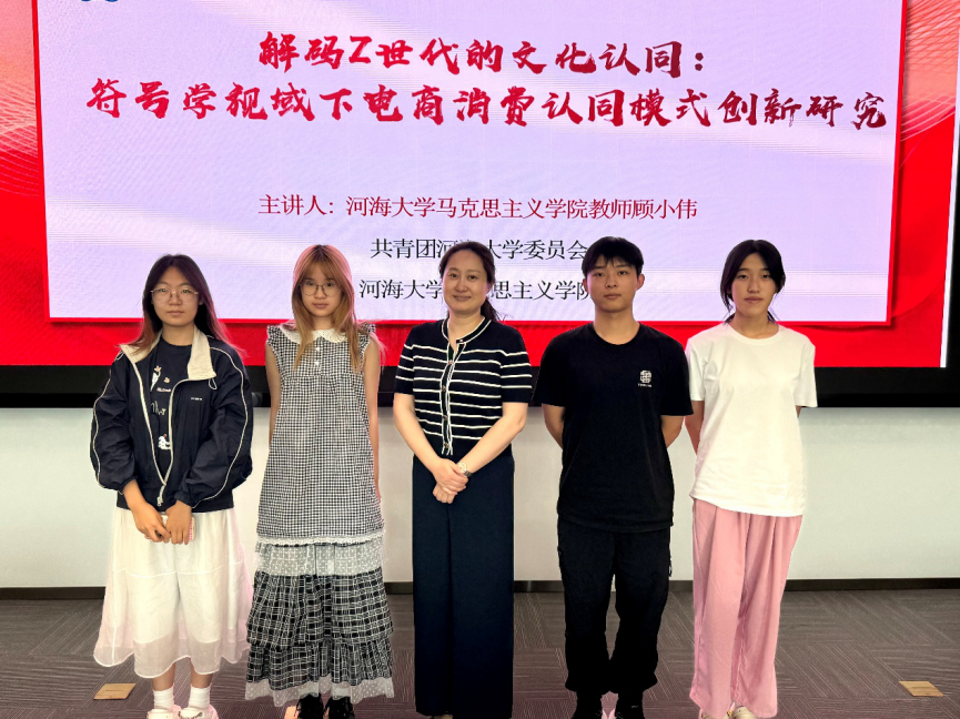 2025年9月23日,河海大学马克思主义学院青年教师顾小伟老师为同学们带来了一场题为《解码Z世代的文化认同:符号学视域下电商消费认同模式创新研究》的学术讲座。本次讲座在河海大学常州校区6号楼W104教室举行,讲座面向常州校区全体学生。