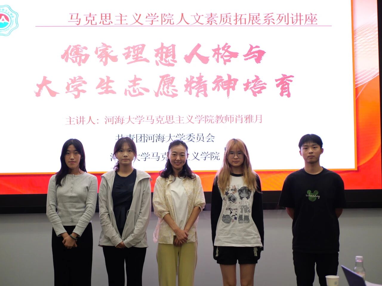 2025年9月18日,河海大学马克思主义学院讲师肖雅月老师为河海学子作了一场主题为儒家理想人格与大学生志愿精神培育的学术讲座。本次讲座在河海大学常州校区6号楼W104教室举行,面向常州校区全体学生。