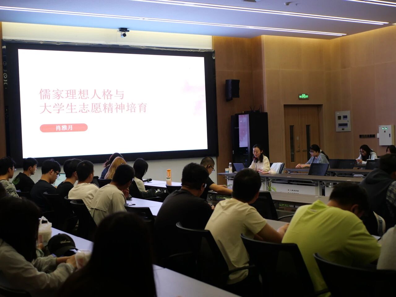 在讲座的最后,肖老师总结道,儒家理想人格与大学生志愿精神在本质相通——从“人性本善”“内圣外王”再到“唯道求是”“义以为上”,这为大学生志愿精神的培育提供了文化底蕴和价值指引。她鼓励同学们将个人发展与社会进步结合,在志愿服务中实现自我发展与成就。